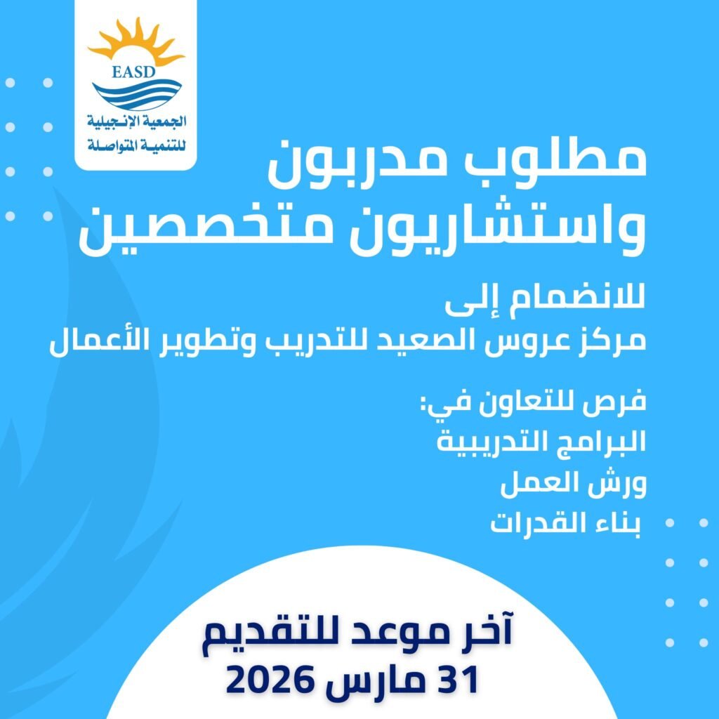 انضم إلى قاعدة المدربين بمركز عروس الصعيد للتدريب وتطوير الأعمال 🌟